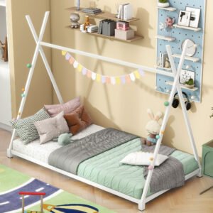 Metal Twin Size House Platform Bed with Triangle