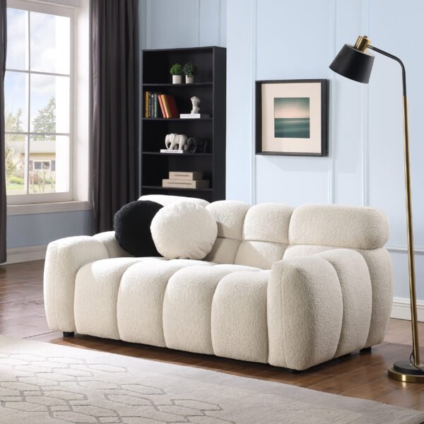 64.96 length ,35.83″ deepth ,human body structure for USA people, marshmallow sofa,boucle sofa beige color,3 seater