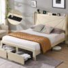 8 reviews for Full Size Bed Frame with 2 Storage Drawers, Upholstered Bed Frame with Wingback Headboard Storage Shelf Built-in USB Charging Stations and Strong Wood Slats Support, No Box Spring Needed, Beige