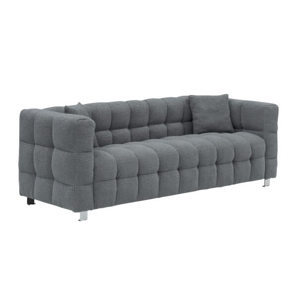 1 review for Grey teddy fleece sofa 80 inch discharge in living room bedroom with two throw pillows hardware foot support