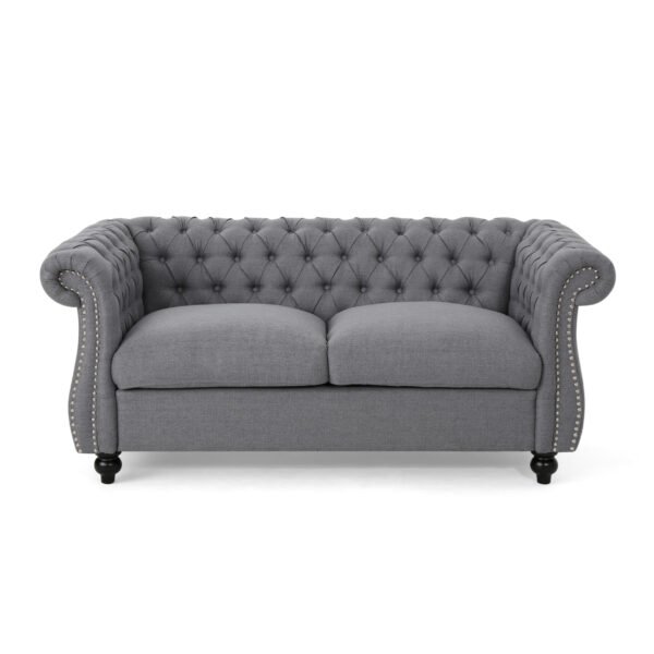 CHESTERFIELD STYLE: Designed with the traditional Chesterfield loveseat in mind, this piece hits all the key elements with deep button tufting, nailhead accents, and rolled armrests.