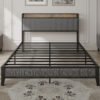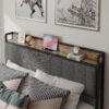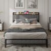 7 reviews for Queen Size Bed Frame with Charging Station, Upholstered Headboard, Metal Platform, Grey