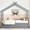 This twin bed with house-style structure, trundle is an outstanding piece that you cannot refuse! The space-optimizing and house-shaped design is a thoughtful consideration of giving a satisfactory experience of closing to the nature and family warmth. Moreover, the house-shaped wooden structure integrated to the bed provides you with architectural aesthetics, along with the contemporary and minimalistic-style appearance.