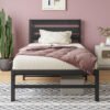 6 reviews for Twin Size Platform Bed Frame with Rustic Vintage Wood Headboard, No Box Spring Needed Black