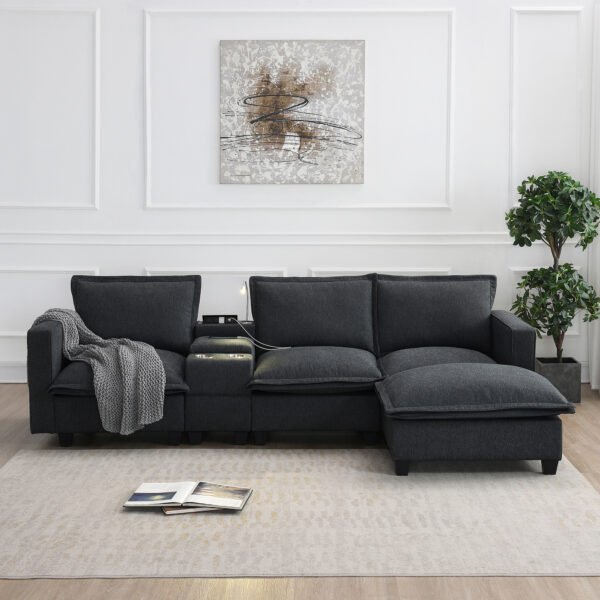 1. [VIDEO provided][New]109*57"Modern Sectional Cloud Sofa with Console,USB Charging Port,Reading Light,Cup Holder,4 Seat Chenille Modular Couch,Storable Indoor Funiture for Living Room,Apartment,2 Color photo review